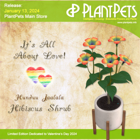 On the 13th of January we released a new limited edition Hibiscus Shrub *Hunduu Jaalala* dedicated to Valentine's Day 2024. It is available for purchase in the PlantPets Main Store until the 15th of February 2024.