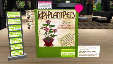 The limited edition roses Sweethearts and Lovers can now be purchased from a vendor at the entrance of the PlantPets Main Store. They are 20% off for members of the group PlantPets Premium (only for AVs who wear the group tag). The vendor will stay online until 100 seeds are sold. The first 50 seeds were gone before we managed to publish the news about the sale… And only 14 from the second set of 50 seeds are left at the moment. Stay tuned for more new rose plantpets this weekend!